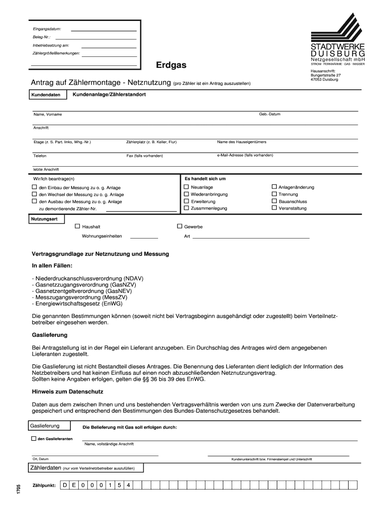 Get the free Bungertstra e 27 Antrag auf Z hlermontage - Netznutzung ... - netze-duisburg