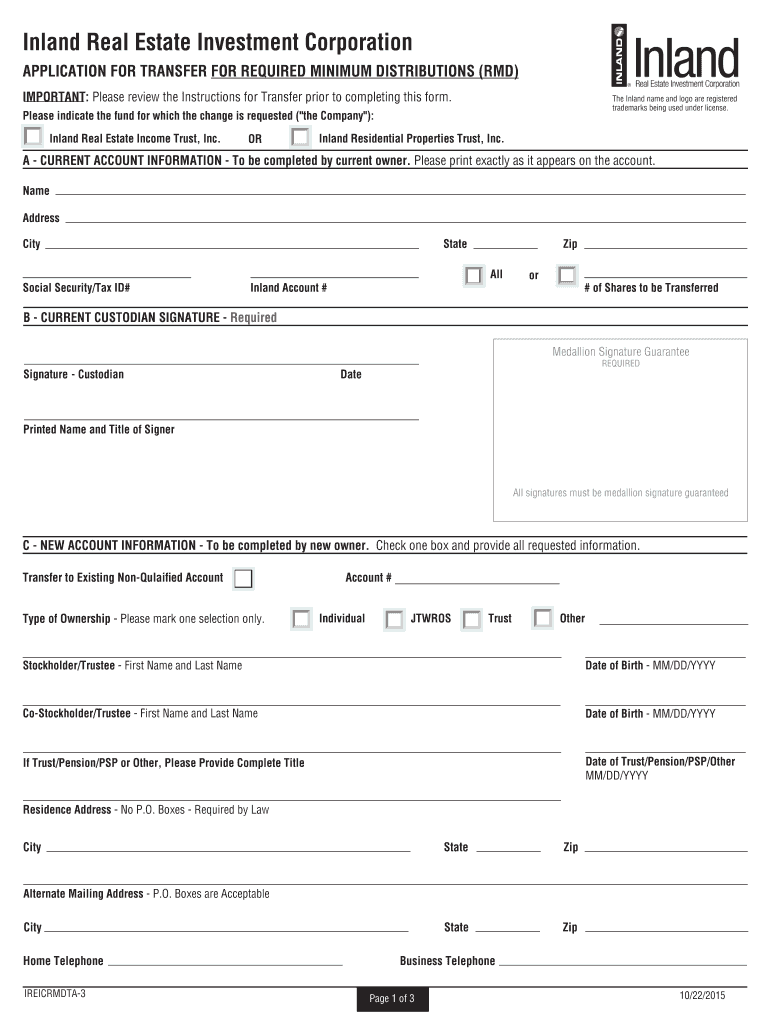 Get the free APPLICATION FOR TRANSFER FOR REQUIRED MINIMUM DISTRIBUTIONS (RMD)
