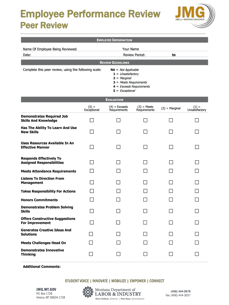 Employee Performance Review Peer Review EMPLOYEE INFORMATION Name Of Employee Being Reviewed: Your Name Date: Review Period: to REVIEW GUIDELINES Complete this peer review, using the following scale: