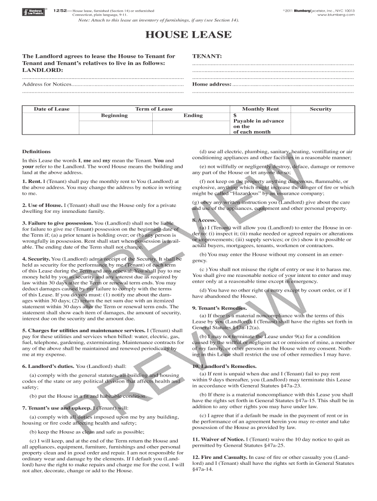 1252 House lease, furnished (Section 14) or unfurnished ... Lease by you (Landlord), I (Tenant) shall have the rights set forth in General Statutes 47a-12(a).