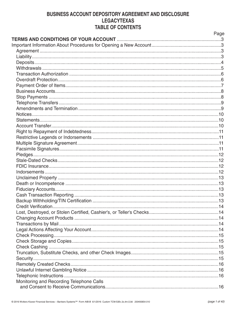 BUSINESS ACCOUNT DEPOSITORY AGREEMENT AND DISCLOSURE