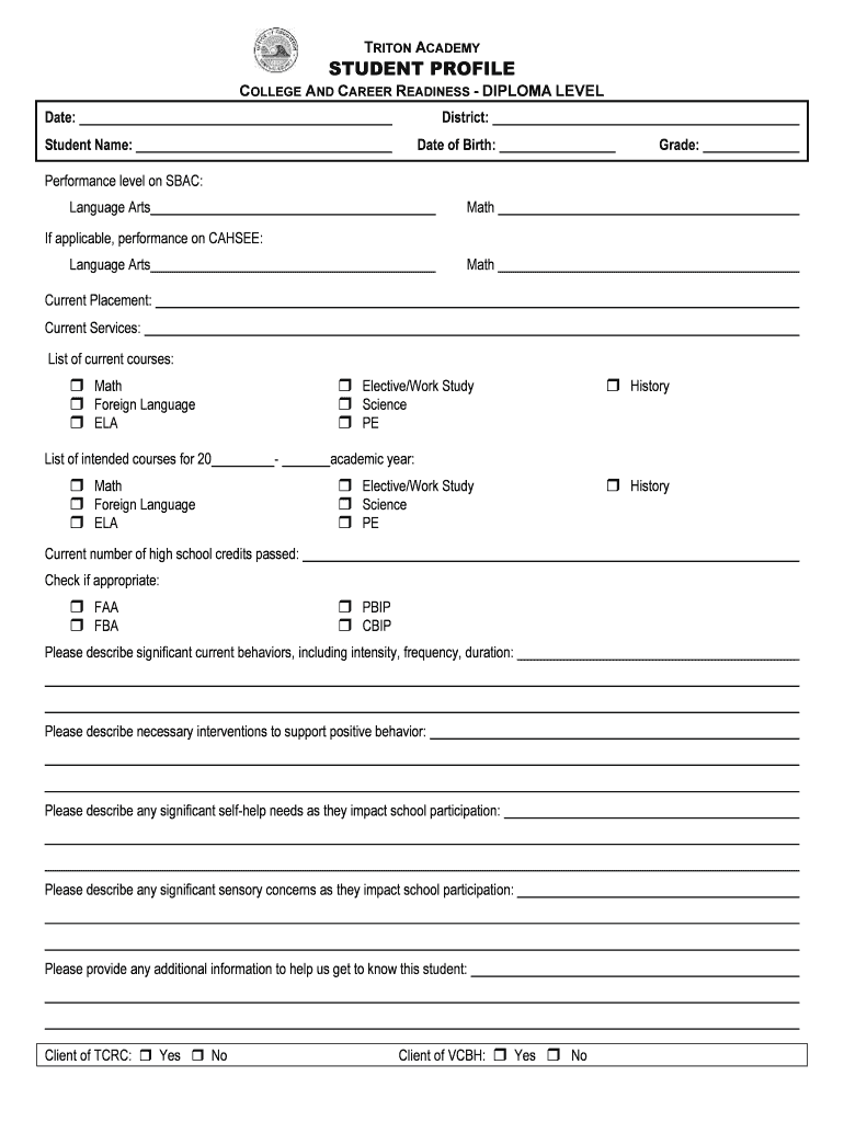 Triton A Student Profile is not the form you're looking for?Search for another form here.