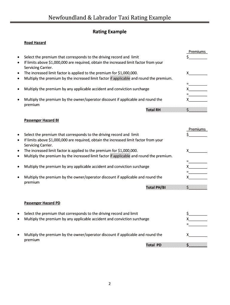 Get the free Newfoundland & Labrador Taxi Rating Example
