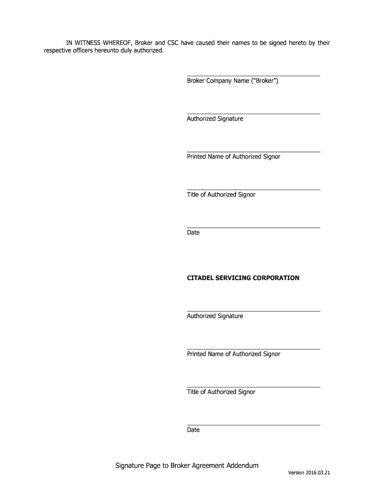 Get the free BROKER AGREEMENT ADDENDUM - citadelservicing.com