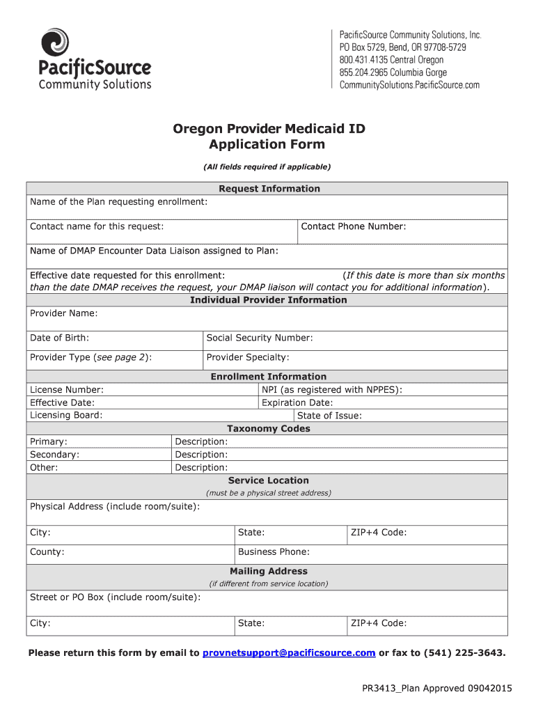 Oregon Provider Medicaid ID. Application Form (All fields required if applicable) Request Information Name of the Plan requesting enrollment: Contact name for this ...