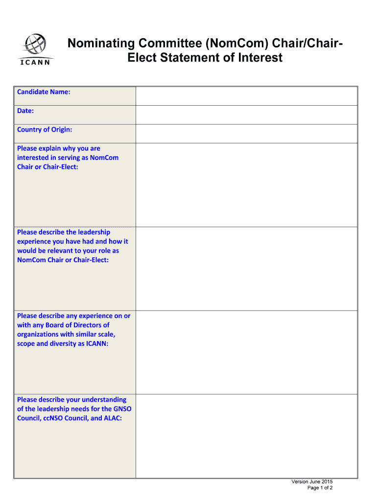 Get the free Nominating Committee (NomCom) Chair/Chair- Elect Statement ... - icann