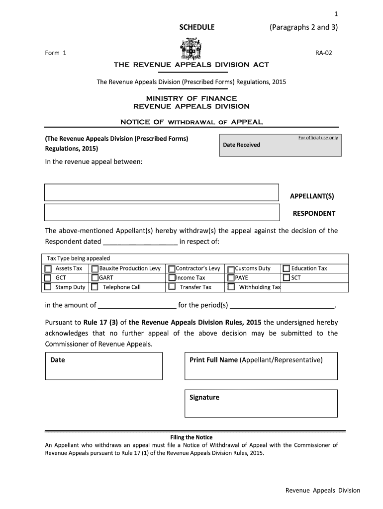 Get the free Notice of Withdrawal of Appeal - RA-02 - mof.gov.jm - mof gov