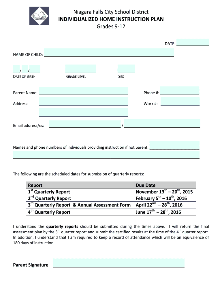 Get the free Niagara Falls City School District INDIVIDUALIZED HOME ...