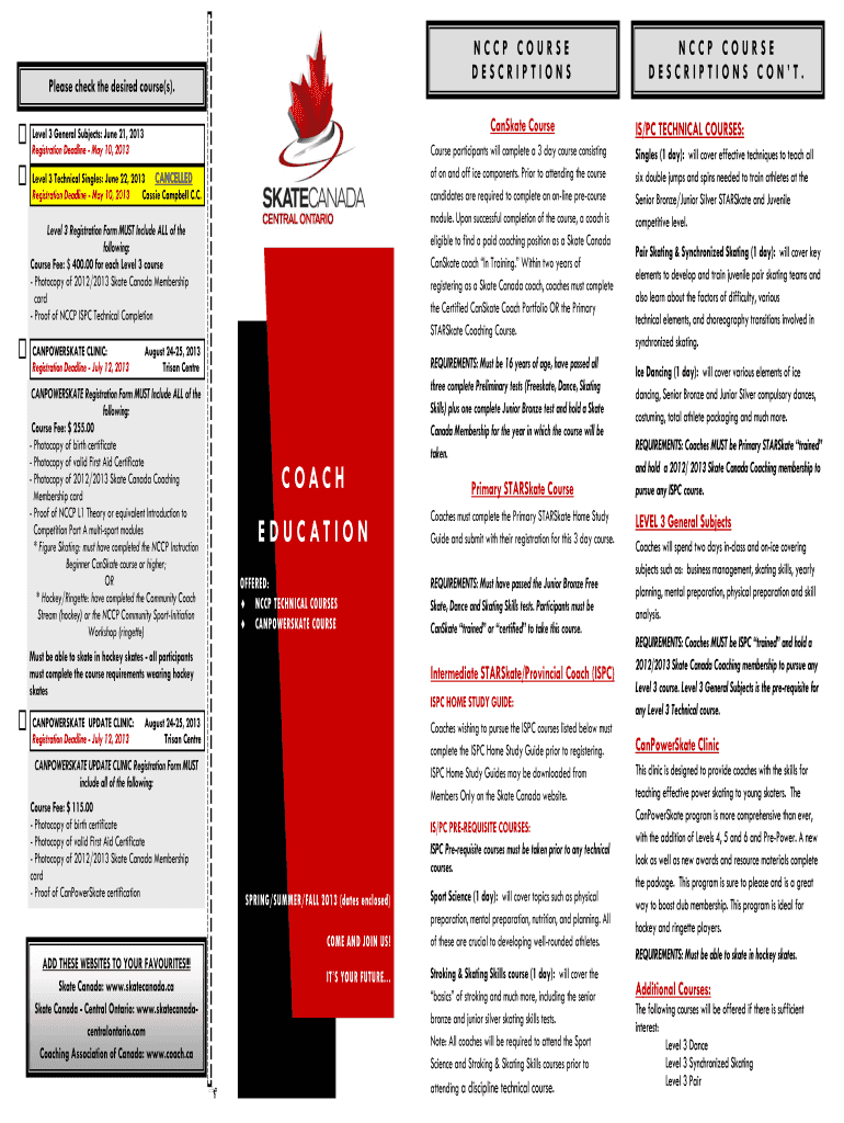 Get the free NCCP COURSE DESCRIPTIONS DESCRIPTIONS CON T. Please check ...