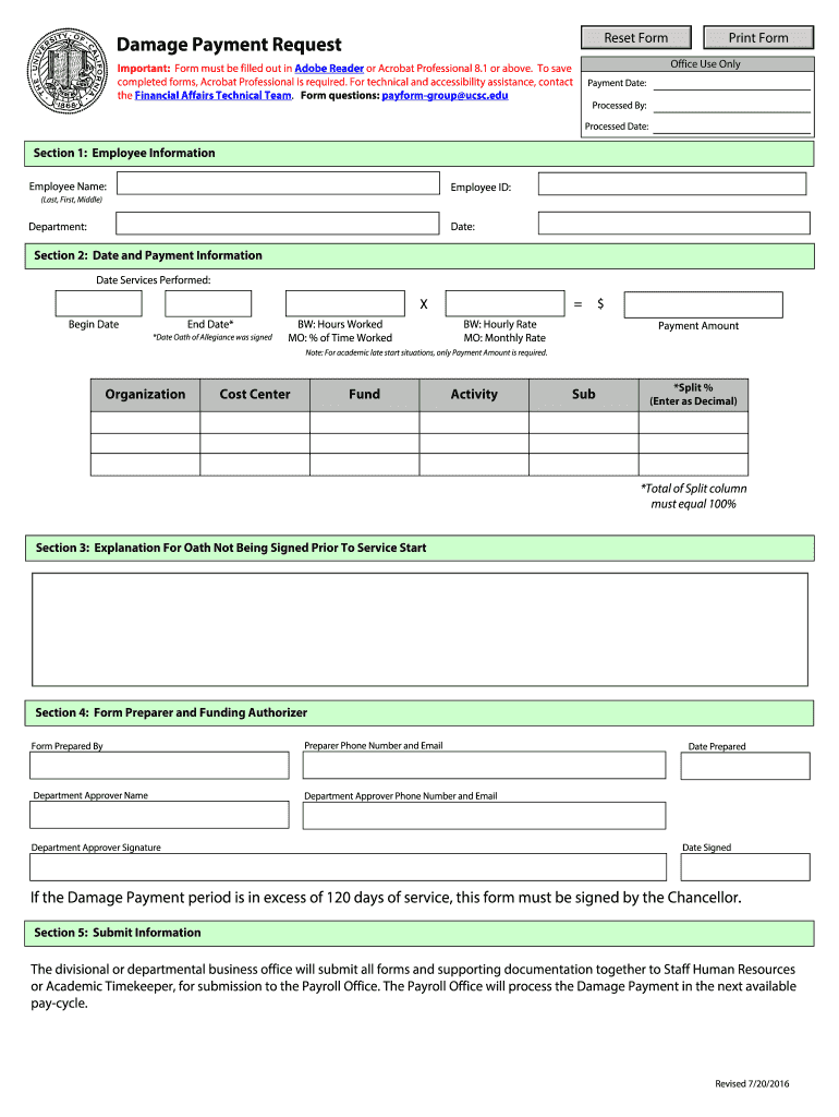 Get the free Damage Payment Request - financial ucsc