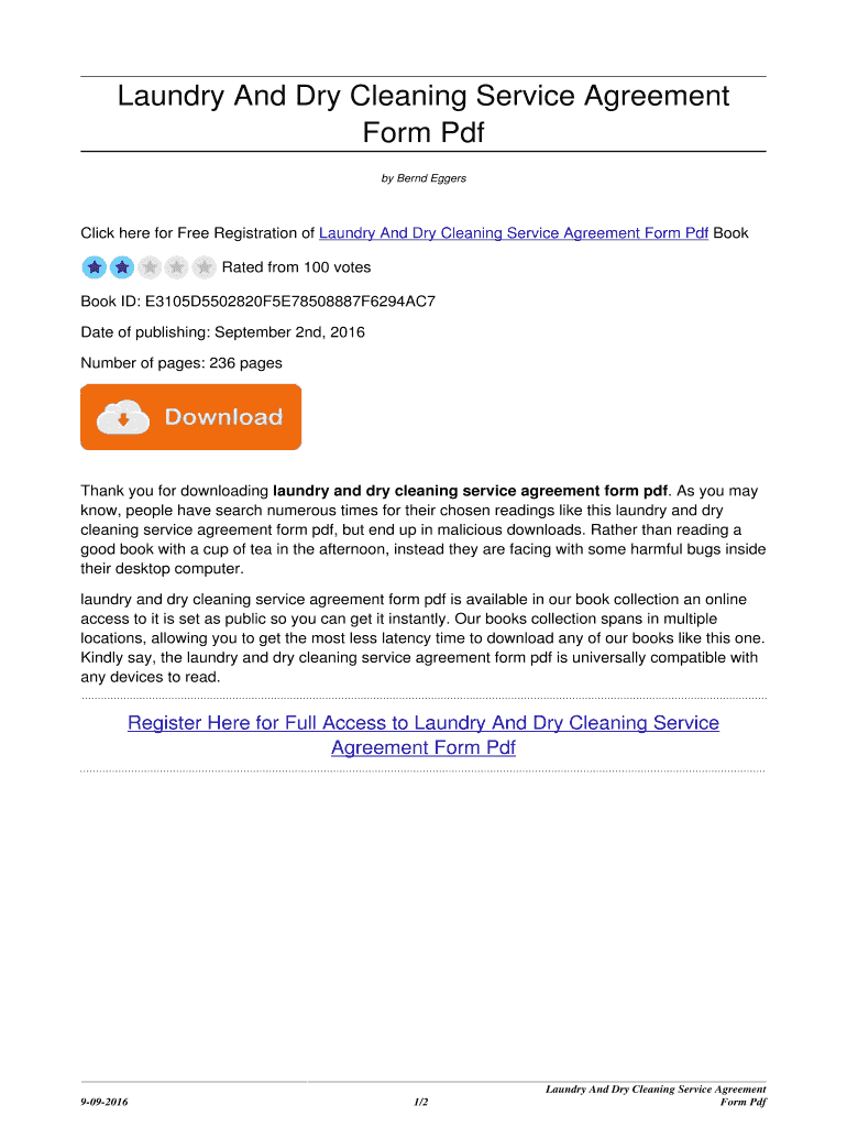 Laundry And Dry Cleaning Service Agreement Form PDF by Bernd Edgers Click here for Free Registration of Laundry And Dry Cleaning Service Agreement Form PDF Book Rated from 100 votes Book ID: E3105D5502820F5E78508887F6294AC7