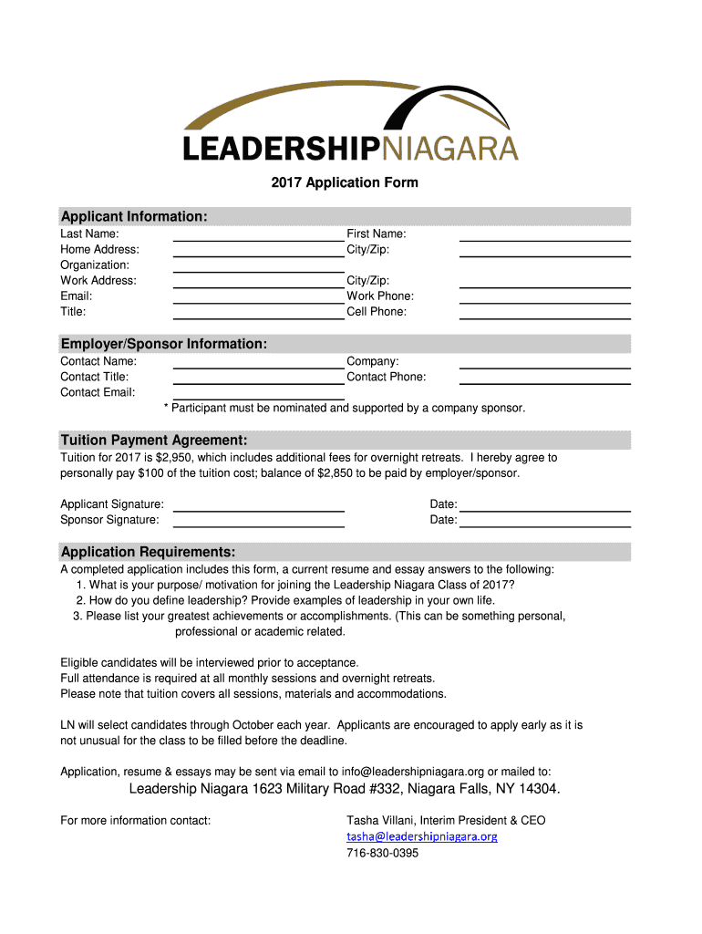 2017 Application Form Applicant Information: Last Name: Home Address: Organization: Work Address: Email: Title: First Name: City/Zip: City/Zip: Work Phone: Cell Phone: Employer/Sponsor Information: