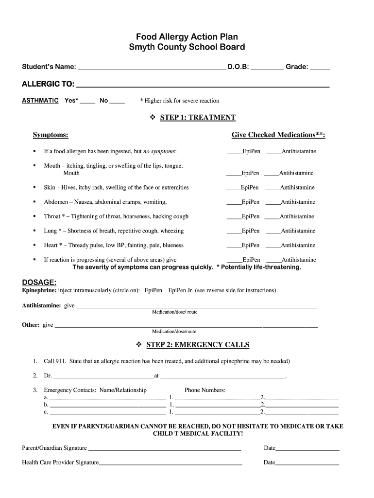 How to fill out food allergy action plan?