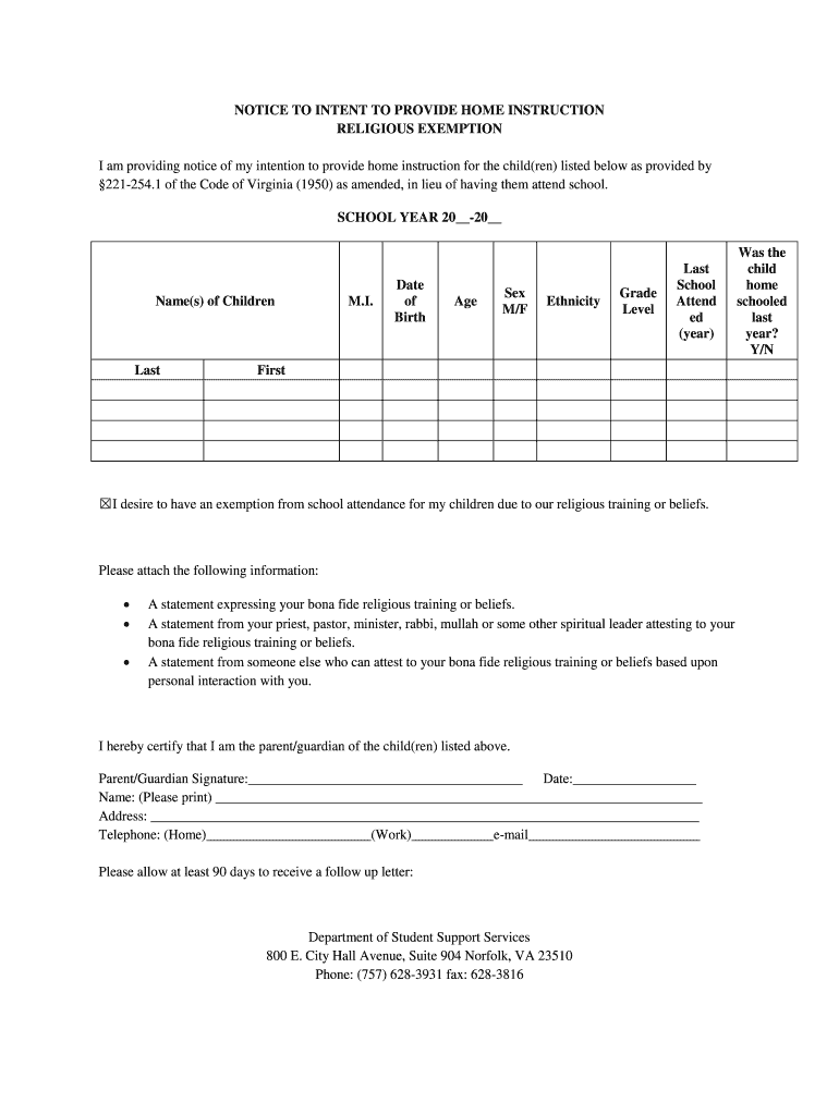 Get the free NOTICE TO INTENT TO PROVIDE HOME INSTRUCTION ...
