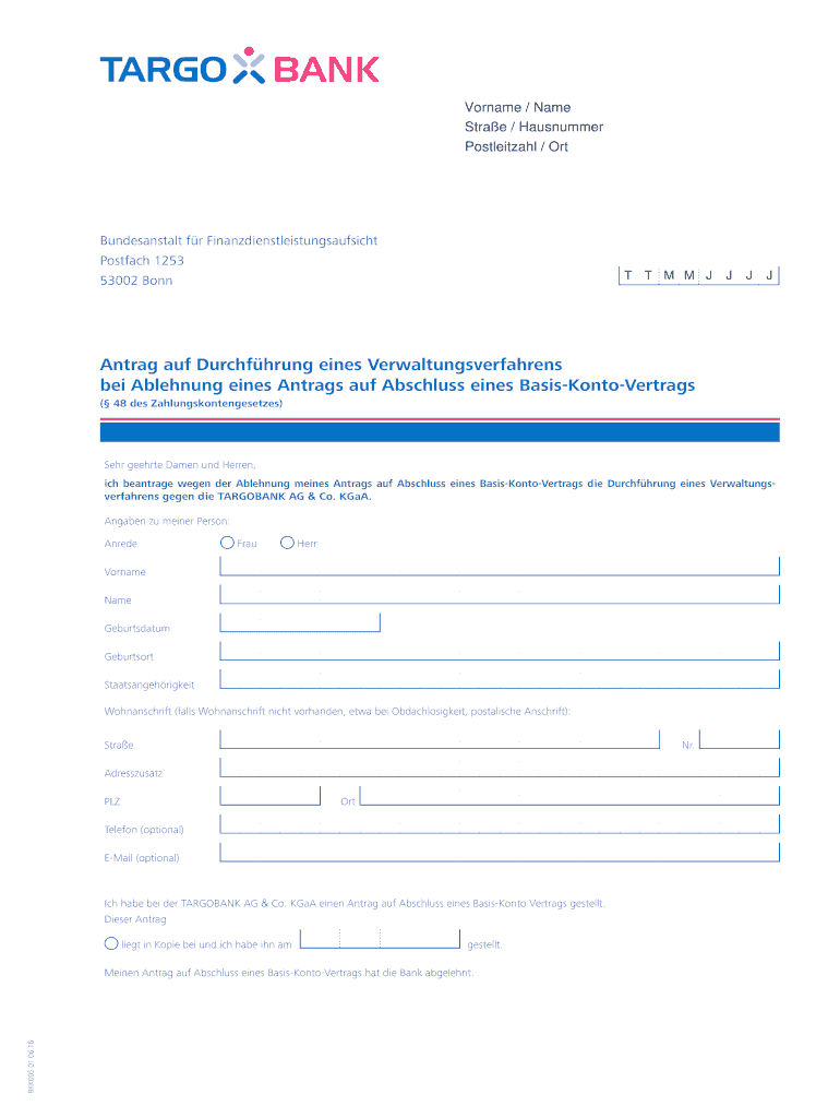 DE Targo Bank BKK005 2016 free printable template