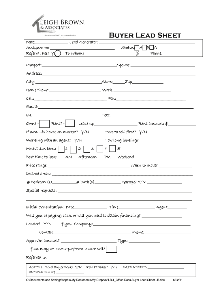 How to fill out buyer lead sheet