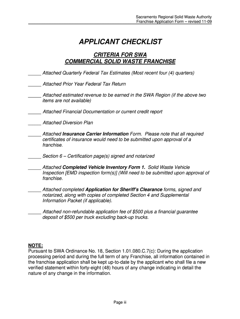 Get the free Franchise Application Rev 11-18-09 - swa saccounty