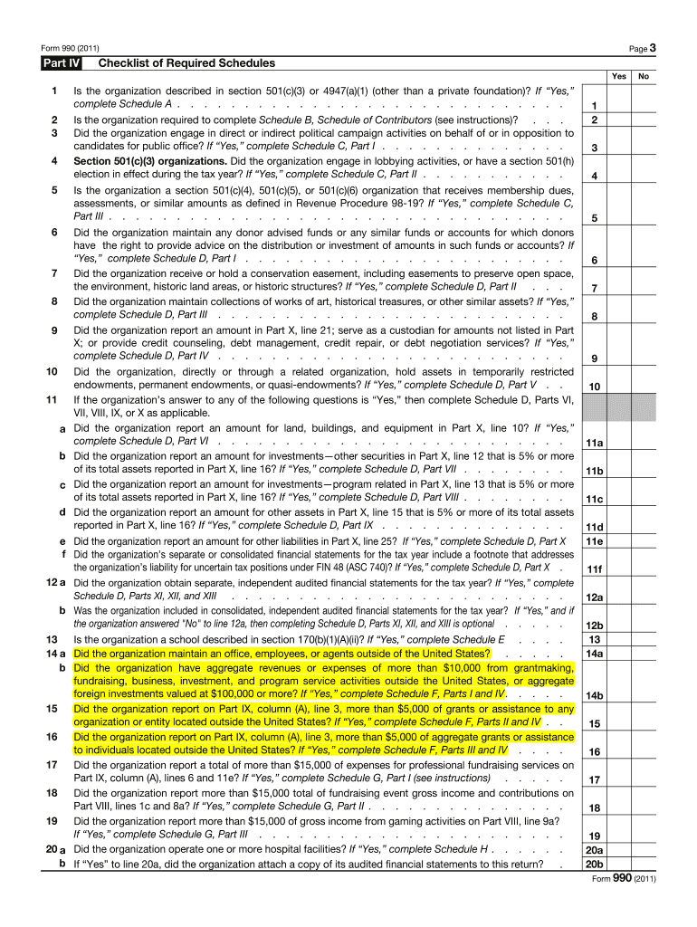 9.Complete any additional schedules required based on your organization’s activities as outlined in the checklist provided.