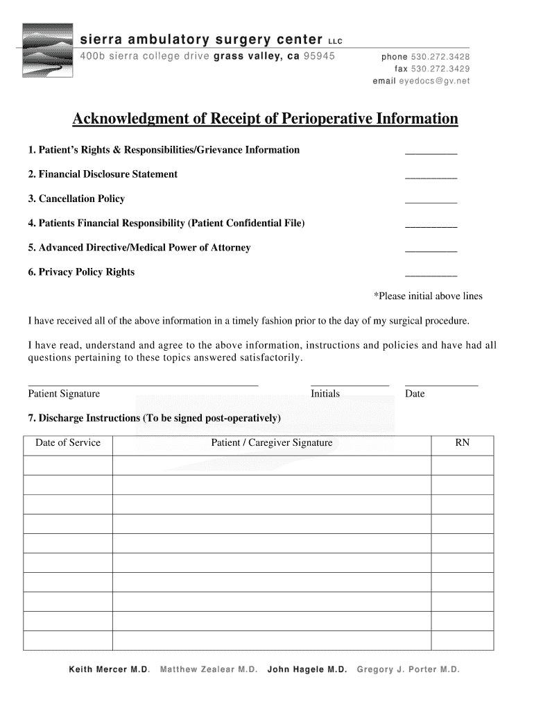 Get the free Patient Forms Instructions - Sierra Ambulatory Surgery Center