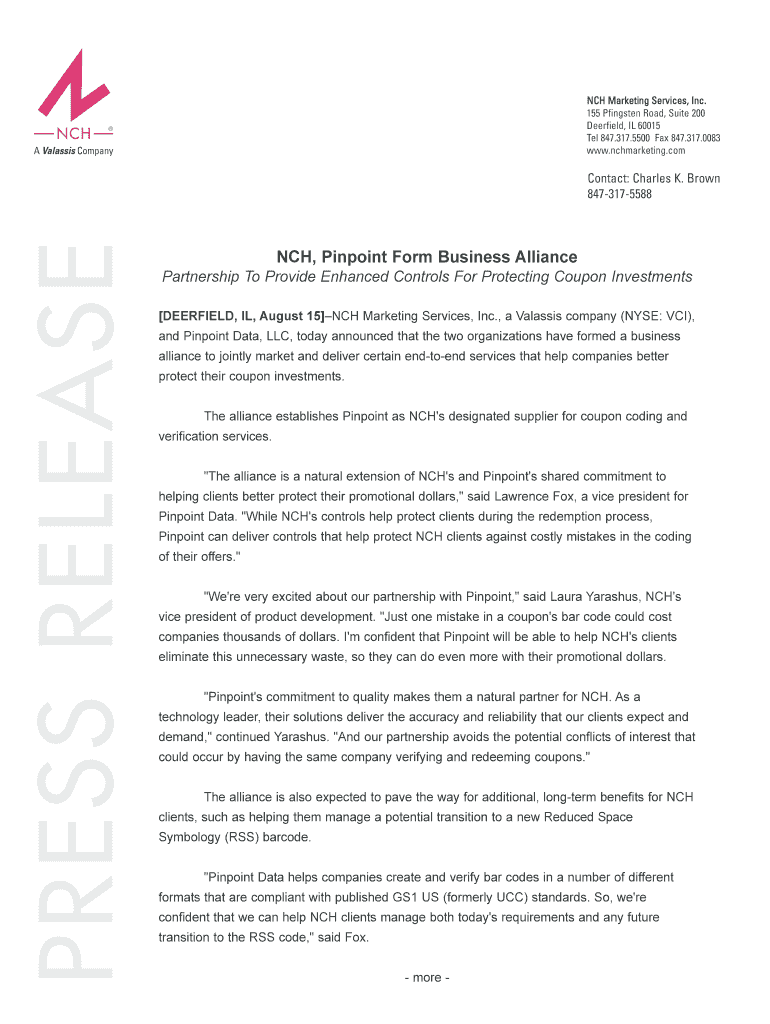 Get the free NCH, Pinpoint Form Business Alliance