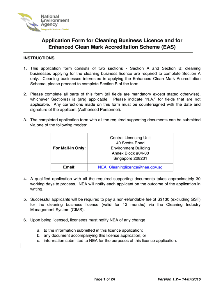 Application Form for Cleaning Business License and for Enhanced Clean Mark Accreditation Scheme (EAS) INSTRUCTIONS 1. This application form consists of two sections Section A and Section B; cleaning