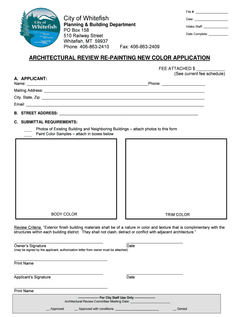 Get the free Architectural Review - Repaint - City of Whitefish - cityofwhitefish