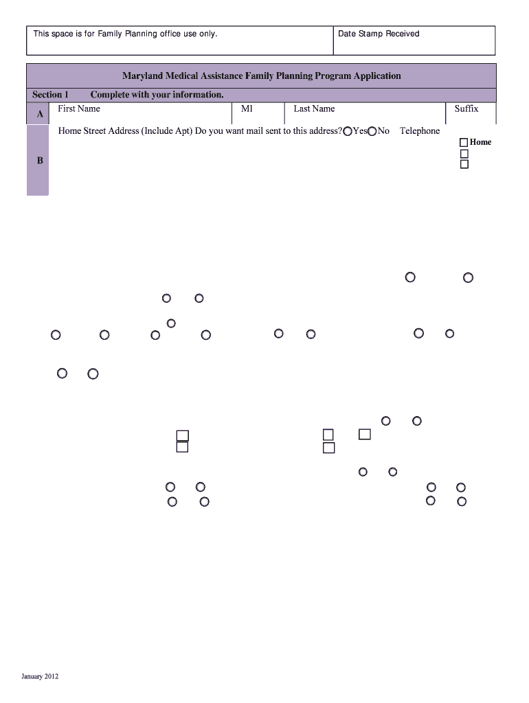 January 2012 Maryland Department of Health and Mental Hygiene Maryland Medical Assistance. Family Planning Program. Application. The Maryland Medical Assistance ...