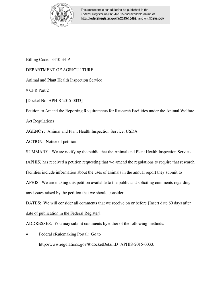 This document is scheduled to be published in the Federal Register on 06/24/2015 and available online at http://federalregister.gov/a/201515499, and on Days. Billing Code: 341034P DEPARTMENT OF AGRICULTURE