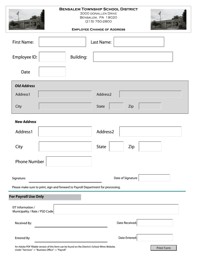Get the free Employee Change of Address - bensalemsd.org