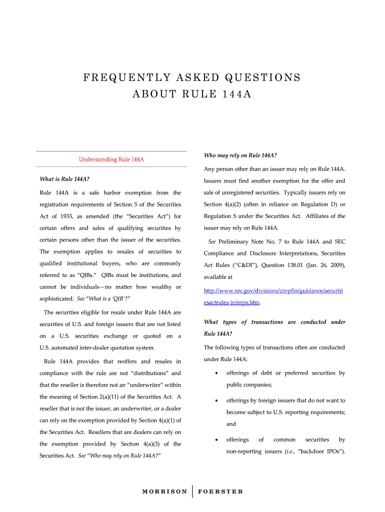 Get the free Understanding Rule 144A