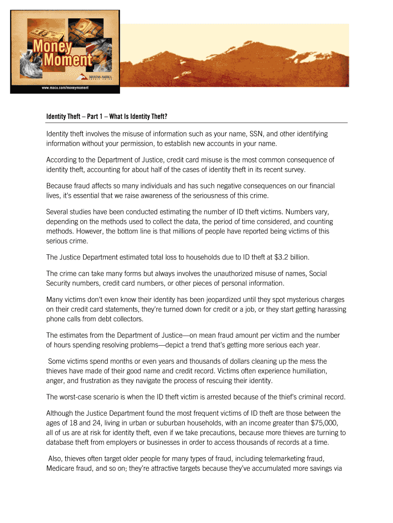 Get the free Identity Theft Part 1 What Is Identity Theft