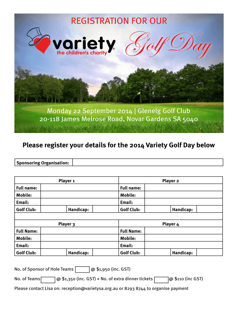 Get the free RegistRation foR ouR Golf Day - variety.org.au - variety org