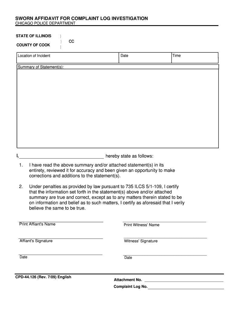 Get the free SWORN AFFIDAVIT FOR COMPLAINT LOG INVESTIGATION ...