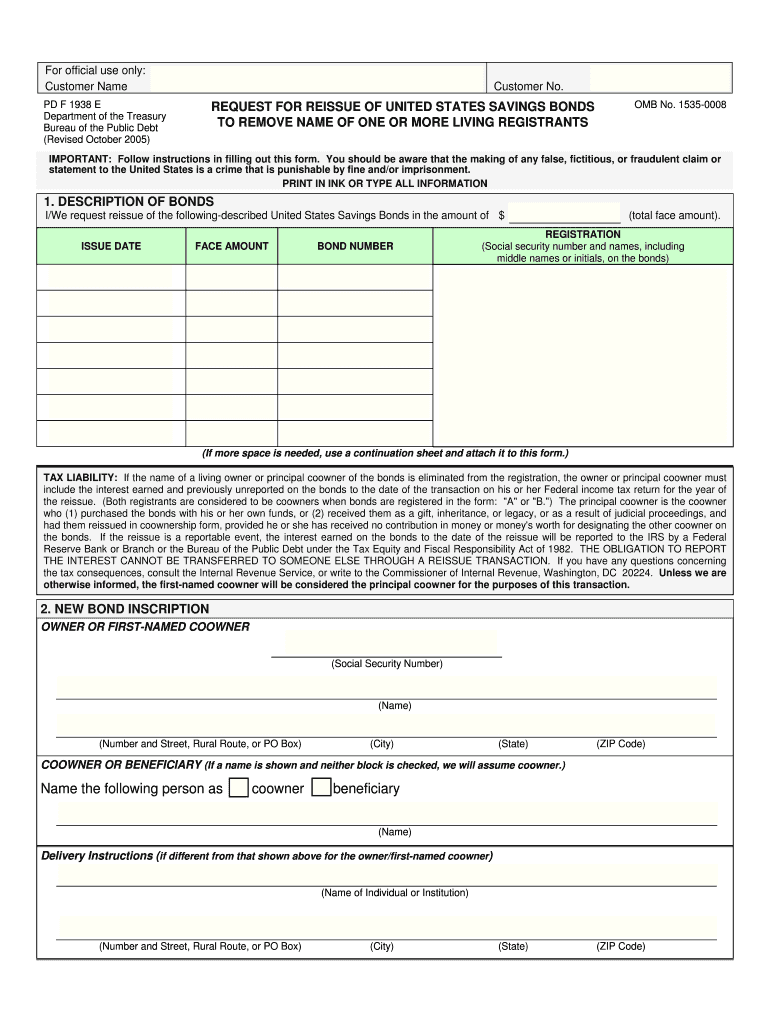 (Revised October 2005)REQUEST FOR REISSUE OF UNITED STATES SAVINGS BONDS