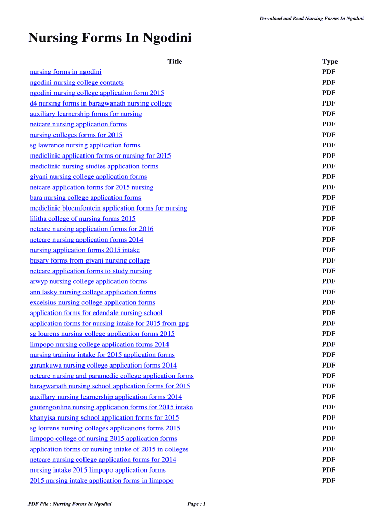 Download and Read Nursing Forms In Govini. Title Type nectar nursing college application forms for 2015 PDF nectar nursing colleges application forms for 2015 PDF.