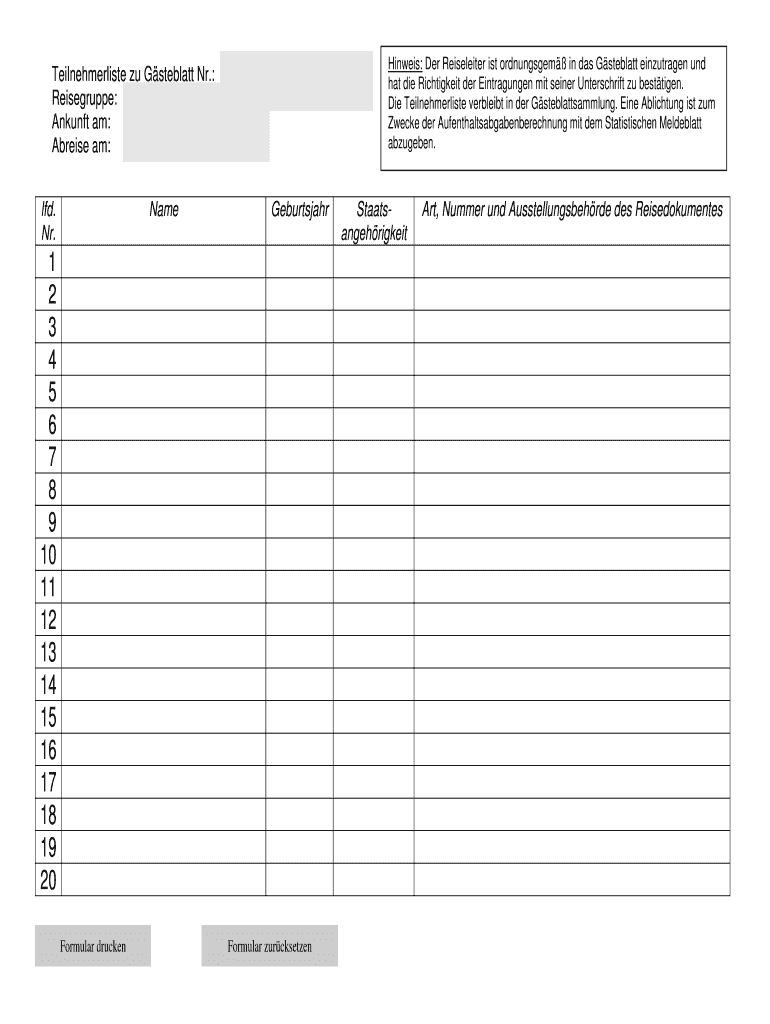 Teilnehmerliste EU G Stewart NR.: Reisegruppe: Amount am: Abrade am: led. NR. Name Geburtsjahr Staats-angeh rugrat Art, Number UND Ausstellungsbeh red DES ...