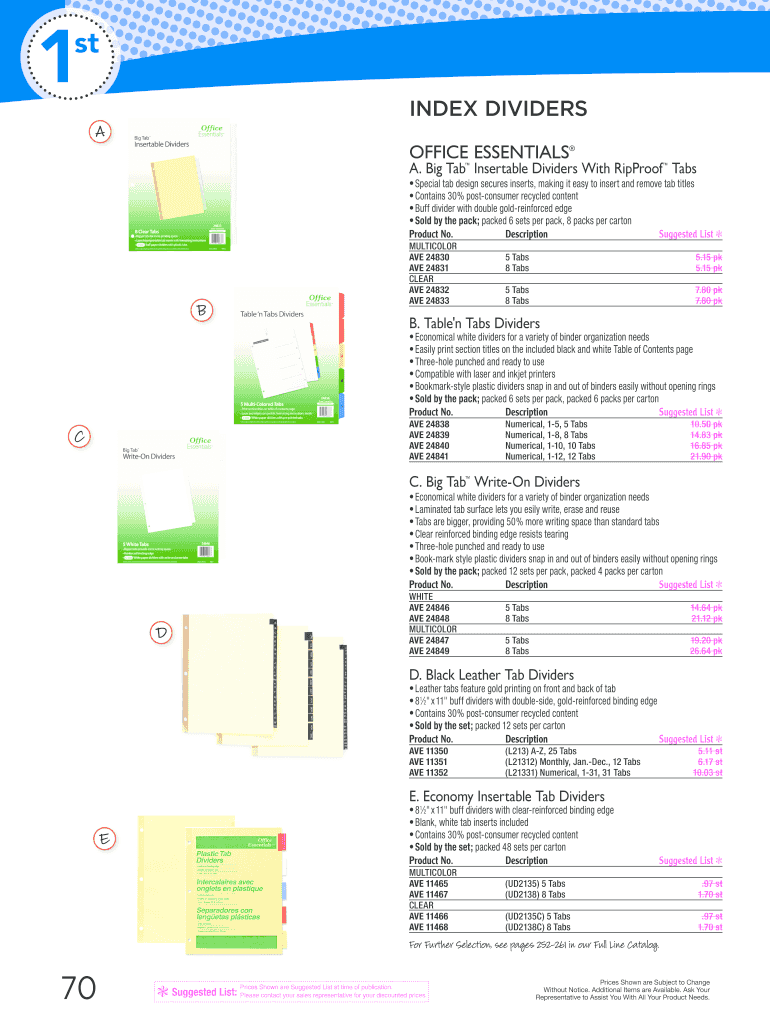 1st INDEX DIVIDERS OFFICE ESSENTIALS. Big Tab Insertable Dividers With Disproof Tabs Special tab design secures inserts, making it easy to insert and remove tab titles Contains 30% postconsumer recycled