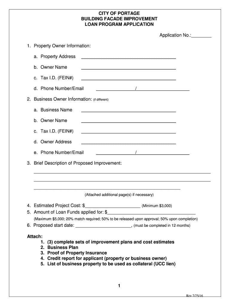 To fill out a building facade improvement loan, property owners must provide information about the proposed facade improvements, estimated costs, and repayment plan.