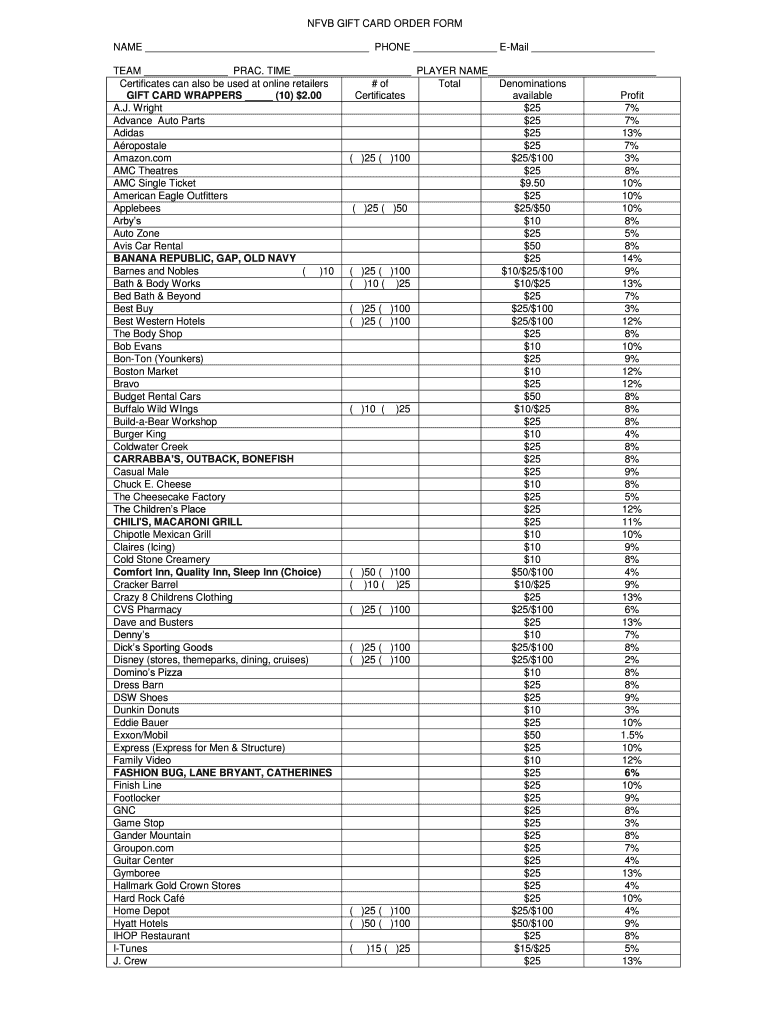 Anyone who wants to purchase gift cards from NFVB must file the NFVB gift card order.