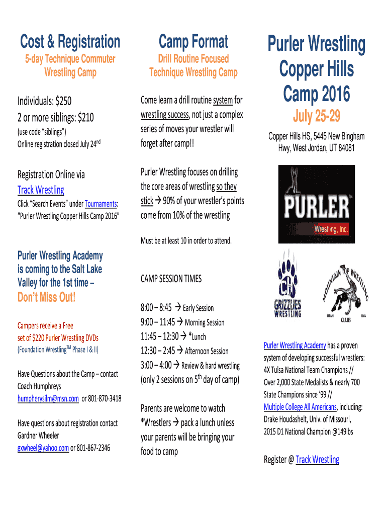 Get the free Purler Wrestling Copper Hills Camp - Flyer & Registration