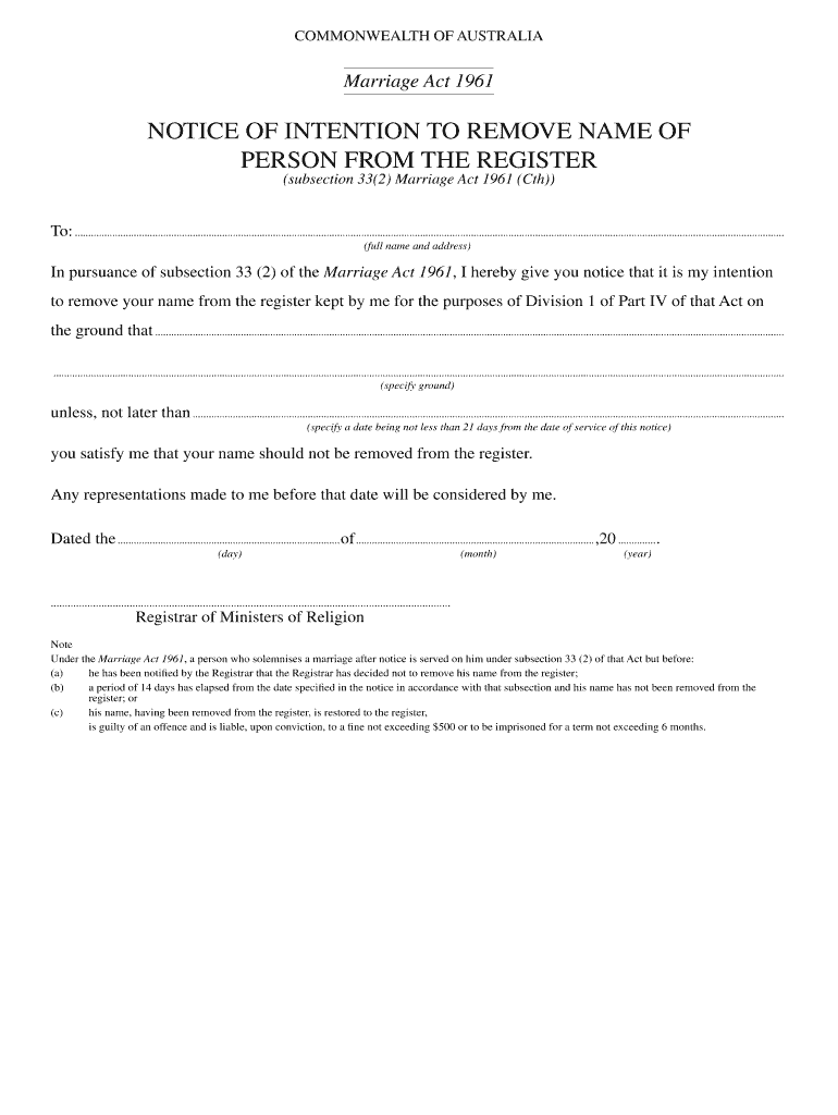 Get the free Notice of Intention to remove name of person from the register - ag gov