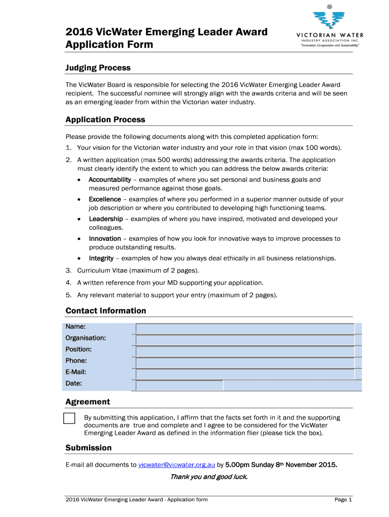 Edit your 2016 vicwater emerging leader form online