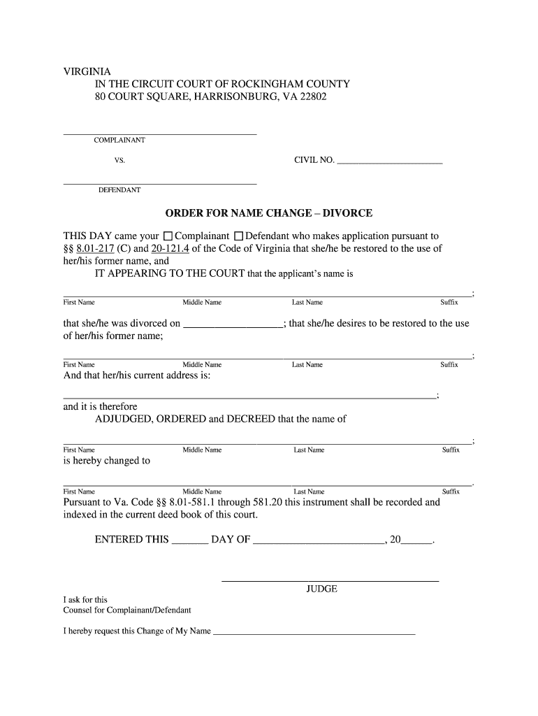 Get the free VIRGINIA IN THE CIRCUIT COURT OF ROCKINGHAM COUNTY - rockinghamcountyva