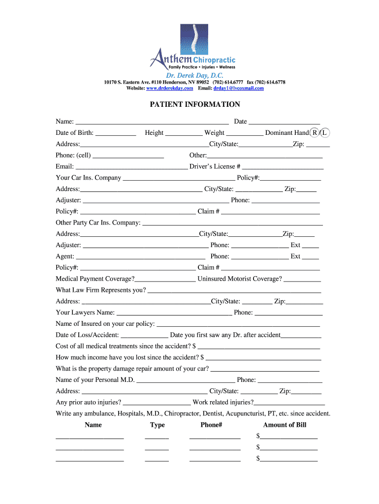 Get the free New Patient Auto Accident / Personal Injury Packet - Anthem ...