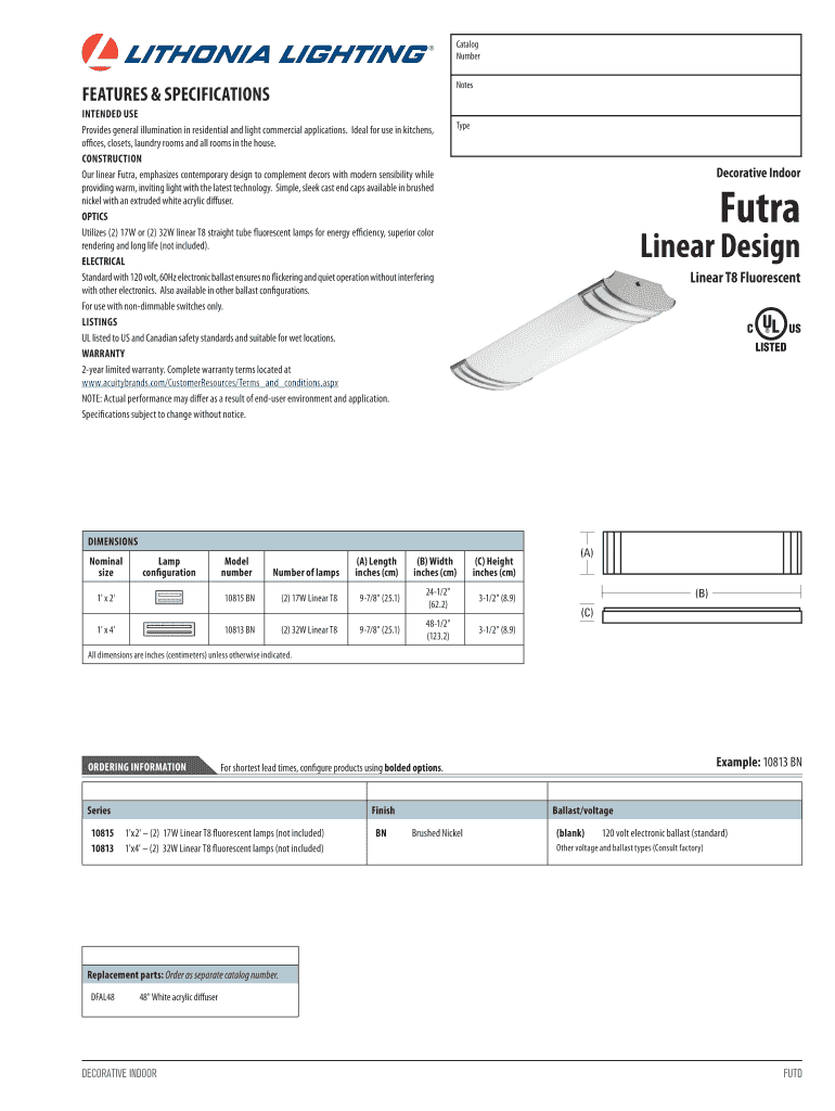 FEATURES & SPECIFICATIONS INTENDED USE Provides general illumination in residential and light commercial applications. Ideal for use in kitchens,