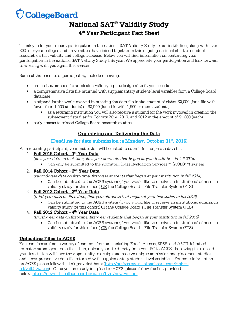 Thank you for your recent participation in the national SAT Validity Study. Your institution, along with over