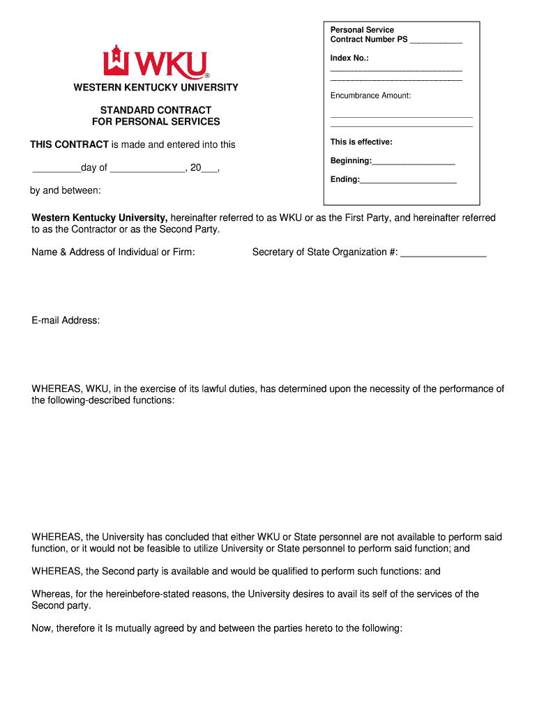 Get the free Western Kentucky University, hereinafter referred to as WKU or ... - wku