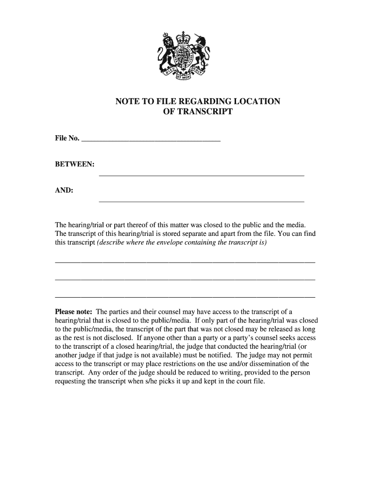 Get the free NOTE TO FILE REGARDING LOCATION OF TRANSCRIPT - court nl
