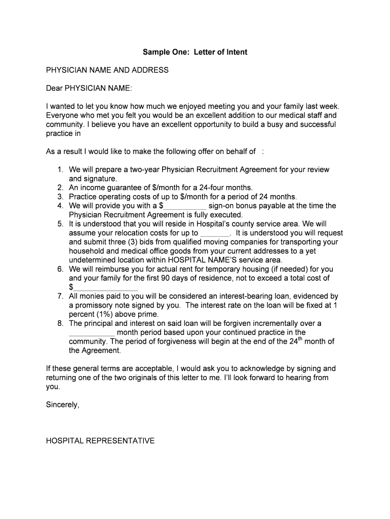 Get the free sample letter of intent for healthcare provider