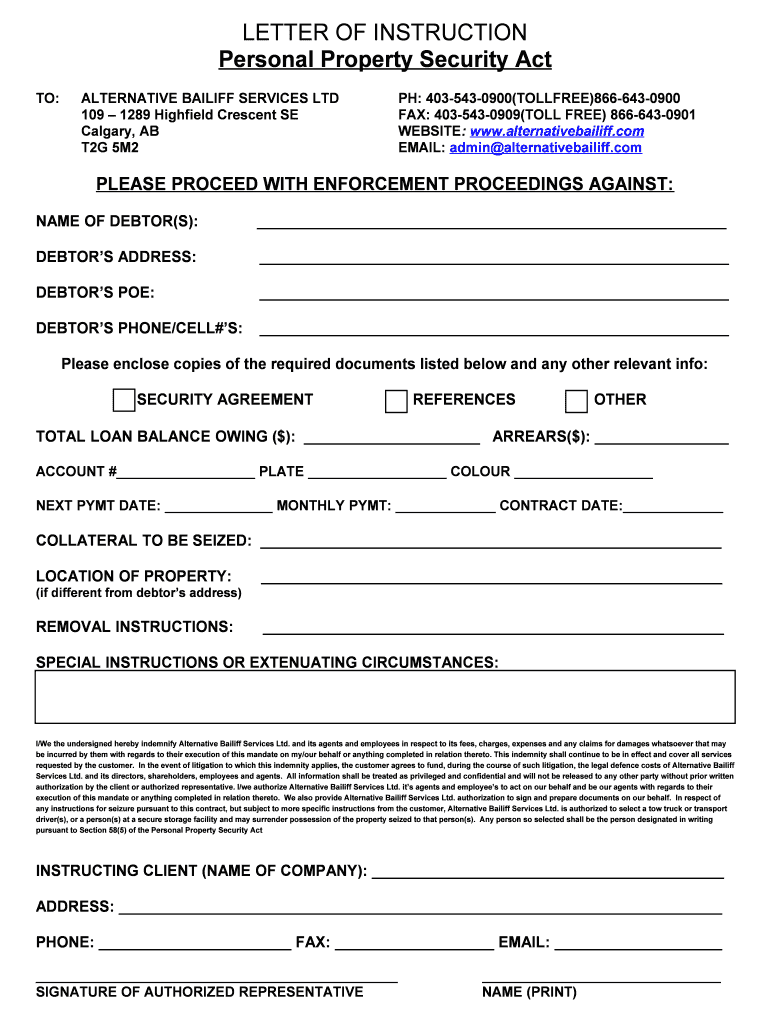 Get the free LETTER OF INSTRUCTION Personal Property Security Act